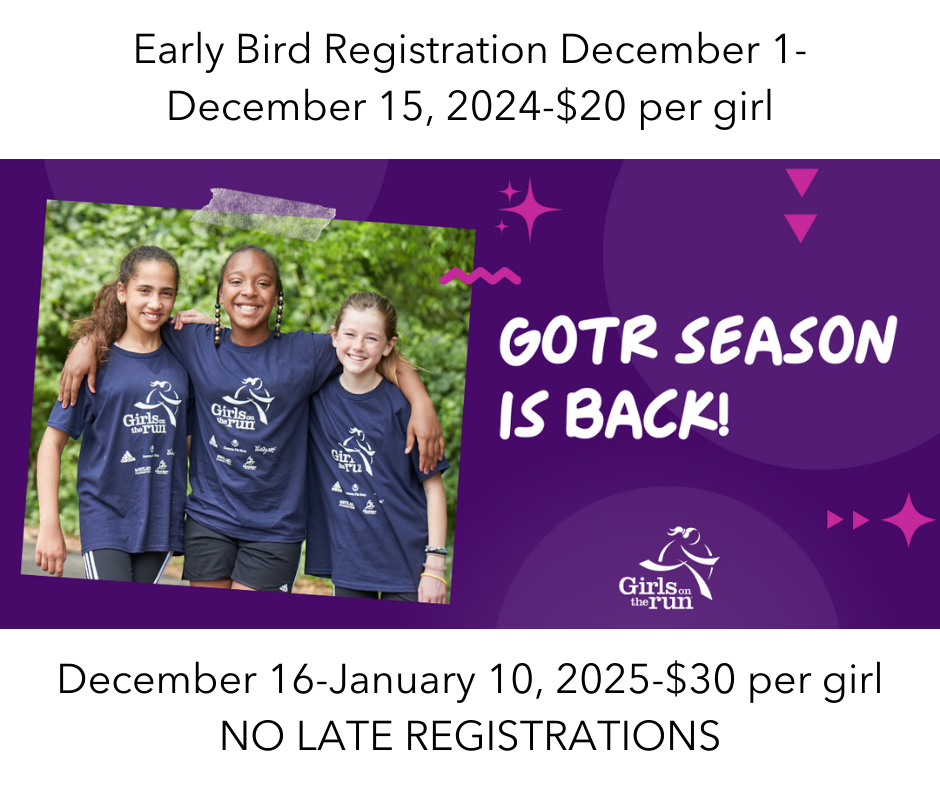 Girls on the Run participants run outside during program practice smiling